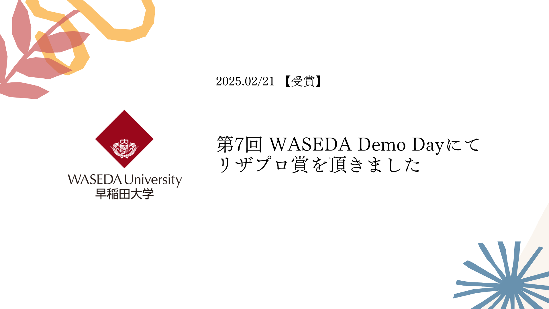 第7回 WASEDA Demo Dayにてリザプロ賞を受賞しました